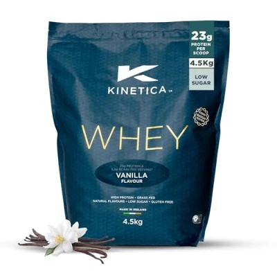 Kinetica Vanilla Whey Protein Powder 4.5kg 23g per Serving 130 Servings Sourced from EU Grass Fed Cows Superior Mixability & Taste