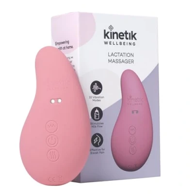 Kinetik Wellbeing Lactation Massager Breast Feeding Pain Relief Device with 10 Vibration Modes, 3 Heat Settings Rechargeable, Portable Breastfeeding Aid for Milk Flow Stimulation, Clogged Ducts