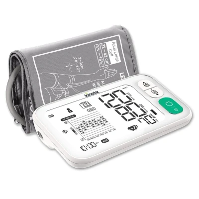 JoybuyThe Kinetik Wellbeing Smart Blood Pressure Monitor (Model TMB-2296-B) features Bluetooth sync, a universal 22–42 cm cuff, memory for 2 users with 199 readings each, and irregular heartbeat detection, offering accurate and convenient home blood pressure monitoring with smartphone connectivity.