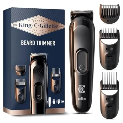 King C. Gillette Cordless Beard Trimmer Kit for Men, Electric Razor Men with Lifetime Sharp Blades, Includes 3 Interchangeable Hair Clipper Combs, Gifts 2 Pin UK Plug