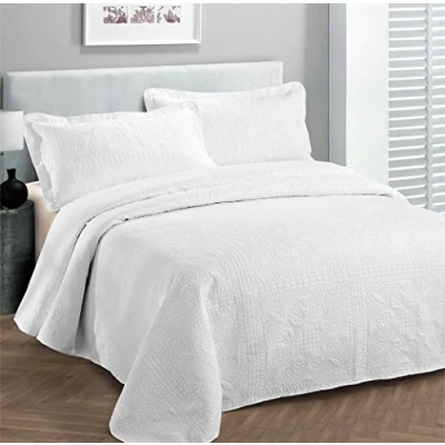 (King/California King, White) Fancy Collection 3pc Luxury Bedspread Coverlet Embossed Bed Cover Solid White New Over Size 300cm x 270cm King/California King
