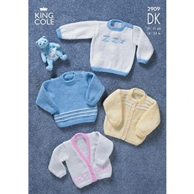 This is a paper KNITTING PATTERN instruction leaflet and not the finished items. Knit with King Cole DK This is a paper KNITTING PATTERN instruction leaflet and not the finished items. Knit with King Cole DK To make the items featured in this leaflet you will need 3.75mm, 4.0mm knitting needles. The following designs are featured in this leaflet: Sweaters and Cardigans. Size Information: New Born to 3 Years / 36 - 61cm / 14 - 24 inches The yarn requirements for the garments in this leaflet are as follows: All Designs age New Born [0-3 months: 3-6 months: 6-12 months: 1-2 years: 2-3 years] use Any King Cole DK 100g - Main 1 [1: 1: 2: 2: 2: Any King Cole DK 100g - Contrast: Small Amount: Small Amount: Small Amount: Small Amount: Small Amount: Small Amount] balls. All instructions are in English.