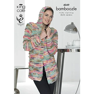 This is a paper KNITTING PATTERN instruction leaflet and not the finished garments. Knit with King Cole Bamboozle Tools Required: 1 pair each of 6mm and 5mm knitting needles. Stitch Holders. Leaflet includes sizes to fit bust 28 - 46 inches / 71 -117 cm. Leaflet includes designs for: Jacket and Waistcoat. The Jacket requires between 6 and 8 100g balls, the Waistcoat between 4 and 6 100g balls of King Cole Bamboozle. Exact requirements depending on design and size chosen. Shades shown in photo are 1141 Strata and 1137 All instructions are in English