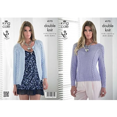 This is a paper KNITTING PATTERN instruction leaflet and not the finished garments. Knit with King Cole Bamboo DK Tools Required: 1 pair each of 3.25mm and 4mm knitting needles. Stitch Holders. Cable Needle. Buttons Leaflet includes sizes to fit bust: 28 - 46 inches / 71 - 117 cm Leaflet includes designs for: Cardigan and Sweater. The Cardigan requires between 5 and 8 100g balls whilst the Sweater requires between 5 and 8 100g balls to knit. Exact requirements depending on size and design chosen. Shades shown in photograph are 518 Ice and 1645 Wisteria All instructions are in English
