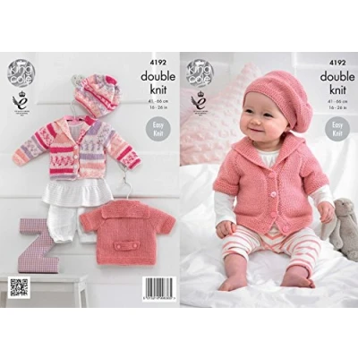 King Cole 4192 Knitting Pattern Babies Cardigans and Beret to knit in Cherish Cherished DK by