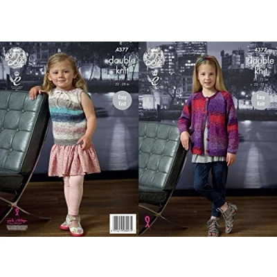King Cole 4377 Knitting Pattern Leaflet Girls Cardigan and Top to knit in Shine DK
