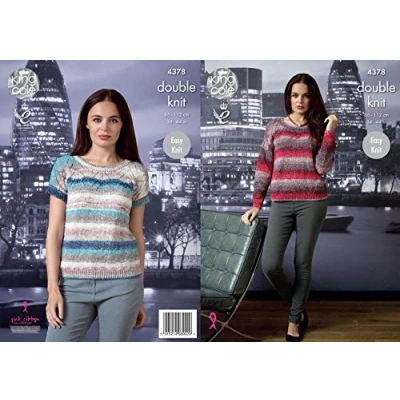 This is a paper knitting pattern and not the finished garments. Knitting with King Shine DK yarn To make the garments included in this easy knitting pattern, you will need a pair each of 3.75mm and 4mm knitting needles. This brochure contains sizes for chest circumference 86 112 cm. The long sleeve requires between 5 and 9 100g balls of King Cole Shine DK. The sleeveless top requires between 3 and 6 balls of King Cole Shine DK. Exact requirements vary by size, see pack insert for details. Other King Cole DK yarns can be used but check tension and height. Shades pictured are 1717 Nightlife and 138 Glacier All instructions are in English