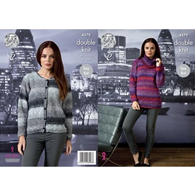 This is a paper KNITTING PATTERN instruction leaflet and not the finished garments. Knit with King Shine DK yarn To make the garments featured in this easy knit leaflet you will require one pair each of 3.75mm, 4mm, 4.5mm, 5.5mm, 6.5mm Knitting Needles. Buttons for Cardigan This leaflet includes sizes to fit bust 34 - 44 inches / 86 - 112cm The Sweater requires between 5 and 10 100g balls of King Cole Shine DK. The Cardigan requires between 4 and 9 balls of King Cole Shine DK. Exact requirements depending on size, see leaflet for details. Other King Cole DK yarns can be used but check tension and yardage. Shades illustrated are 1718 Poppies and 137 Quicksilver All instructions are in English
