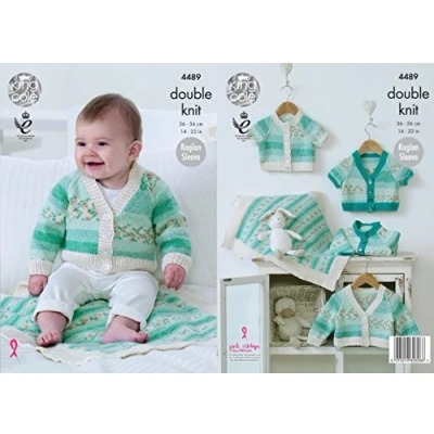King Cole 4489 Knitting Pattern Raglan Cardigans & Blanket in Drifter DK & Cottonsoft DK