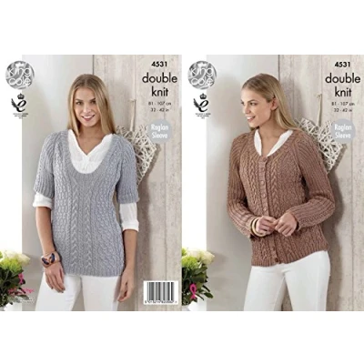 King Cole 4531 Knitting Pattern Ladies Sweater Cardigan in Giza DK