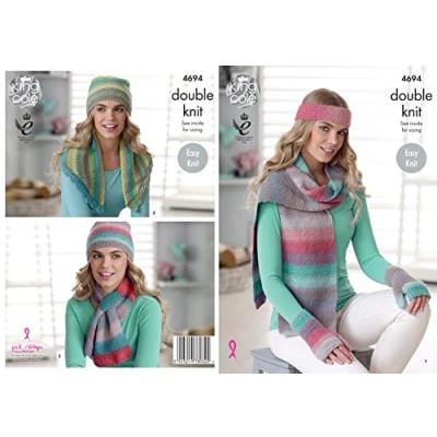 This is a paper KNITTING PATTERN instruction leaflet and not the finished items. Knit with King Cole Sprite DK To make the items featured in this leaflet you will need 3.25mm and 4.0mm knitting needles. The following designs are featured in this leaflet: Scarves, Hat, Fingerless Gloves, Headband and Neck Warmer. Size Information: One Size Please see leaflet for exact yarn requirements. King Cole recommend that you use King Cole Sprite DK other yarns maybe used but check tension requirements prior to starting your project. All instructions are in English.