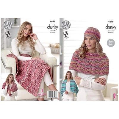 King Cole 4696 Knitting Pattern Easy Knit Blanket Shawl Wrap and Hat in Drifter Chunky