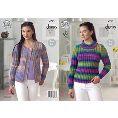 King Cole 4715 Knitting Pattern Womens Easy Knit Sweater and Cardigan in Riot Chunky