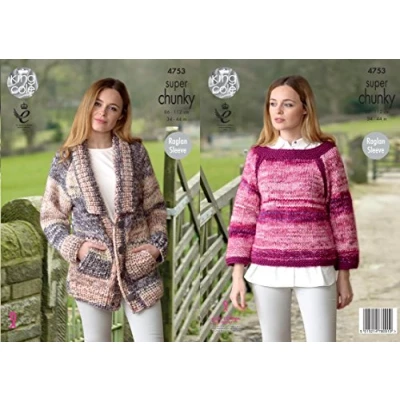 King Cole 4753 Knitting Pattern Womens Raglan Sleeve Jacket and Sweater in Super Chunky
