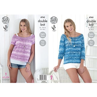 King Cole 4765 Knitting Pattern Womens Raglan Easy Knit Tops in Vogue DK