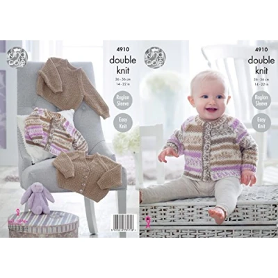 King Cole 4910 Knitting Pattern Baby Easy Knit Raglan Cardigans & Sweater in Cherish Cherished DK,Multicolor,14" 22" chest