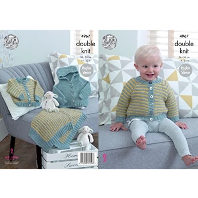 King Cole 4967 Pattern The pattern gives you instructions to create the garments suitable for a chest size of 36cm - 51cm (14" - 22") approximately. This King Cole knitting pattern is suitable for use with most double knit yarns, however tensions may vary and we recommend you knit a tension square before knitting the whole garment. See image provided for the number of 100g balls of yarn required for each garment and the colours that are illustrated in the leaflet. The yarn illustrated is Comfort DK and this is available to purchase on a separate listing. Please note that this is a knitting pattern and NOT a set of finished knitted garments. All knitting instructions are written in English.