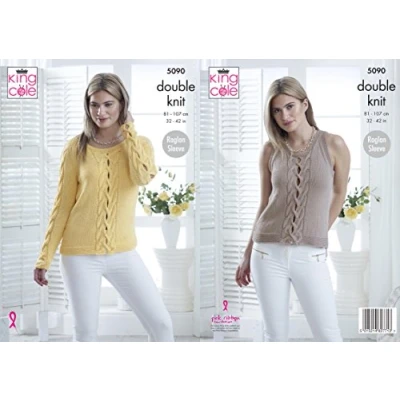 King Cole 5090 Knitting Pattern Womens Sweater and Top in Bamboo Cotton DK