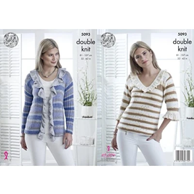 This is a paper KNITTING PATTERN instruction leaflet and not the finished items. Knit with King Cole Cottonsoft Crush DK and Cottonsoft DK To make the items featured in this leaflet you will need 3.25mm, 3.75mm and 4.0mm knitting needles. The following designs are featured in this leaflet: Sweater and Cardigan With Frilled Edges. Size Information: To Fit Bust: 81 - 107 cm / 32 - 42 inches The yarn requirements for the garments in this leaflet are as follows: Sweater to fit bust 32" [34": 36": 38": 40": 42"] use King Cole Cottonsoft Crush DK 100g - Main - Calico (2433) 4 [5: 5: 6: 6: 7: King Cole Cottonsoft DK 100g - Contrast - Ecru (711): 1: 1: 1: 1: 1: 1] balls. Cardigan to fit bust 32" [34": 36": 38": 40": 42"] use King Cole Cottonsoft Crush DK 100g - Main - Waves (2439) 4 [4: 5: 5: 6: 6: King Cole Cottonsoft DK 100g - Contrast - Silver (782): 2: 2: 2: 2: 2: 2] balls. All instructions are in English.