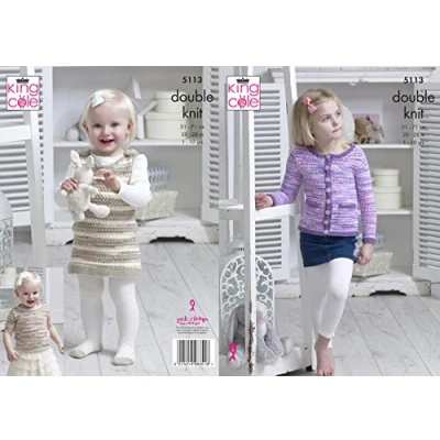 King Cole 5113 Knitting Pattern Baby Girls Cardigan Dress Top in Comfort and Kids DK