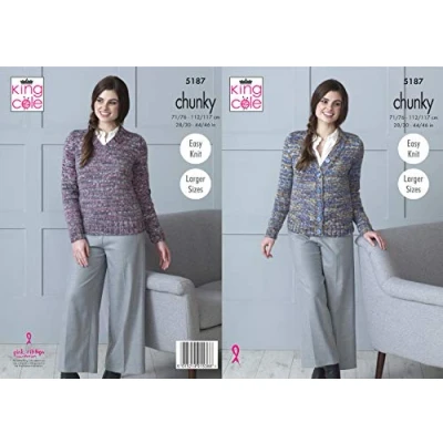 King Cole 5187 Knitting Pattern Womens Easy Knit Cardigan and Sweater in Shadow Chunky