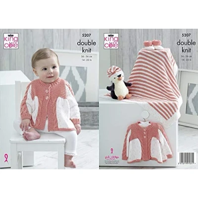 King Cole 5207 Knitting Pattern Matinee Coat Blanket Hat Bootees in Cottonsoft Candy & DK
