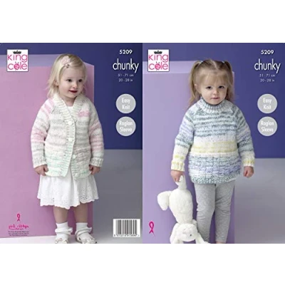 King Cole 5209 Knitting Pattern Childrens Raglan Sweater and Cardigan in Comfort Cheeky Chunky