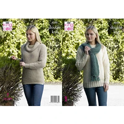 King Cole 5253 Knitting Pattern Womens Sweaters and Scarf in Panache DK