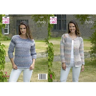 King Cole 5301 Knitting Pattern Womens Cardigan and Sweater in Cotswold Chunky