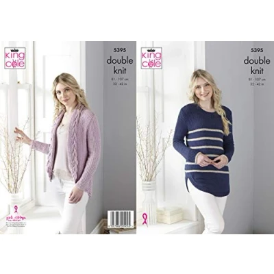 King Cole 5395 Pattern To make the items featured in this leaflet you will need 3.75mm and 4.0mm knitting needles. The following designs are featured in this leaflet: Tunic and Cardigan. Size Information: To Fit Bust: 81 - 107 cm / 32 - 42 inches The yarn requirements for the garments in this leaflet are as follows: Tunic to fit bust 32" [34": 36": 38": 40": 42"] use King Cole Finesse DK 50g - Main - Navy (2820) 7 [8: 9: 10: 11: 12: King Cole Finesse DK 50g - Contrast - Stone (2818): 1: 1: 2: 2: 2: 2] balls. Cardigan to fit bust 32" [34": 36": 38": 40": 42"] use King Cole Finesse DK 50g - Wisteria (2822) 10 [11: 12: 13: 14: 15] balls. All instructions are in English.