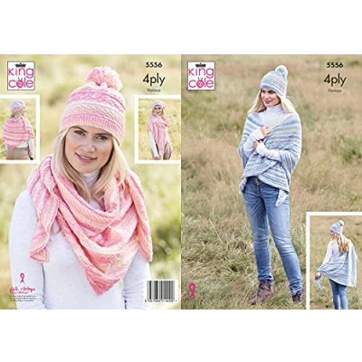 King Cole 5556 Knitting Pattern Womens Shawls and Hats in Drifter 4 Ply