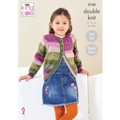 King Cole 5740 Child DK Cardigan Sweater Knitting Pattern, Multi,20'' 28''