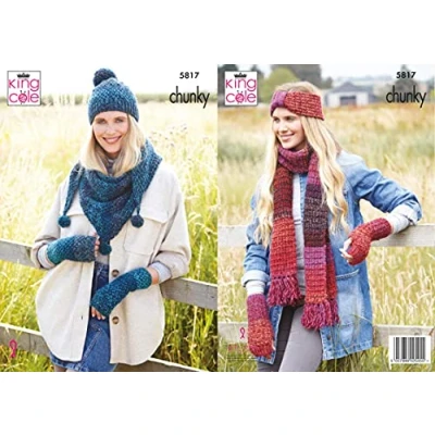 King Cole 5817 Knitting Pattern Womens Hat Shawl Scarf Wristwarmers in Autumn Chunky, Multi