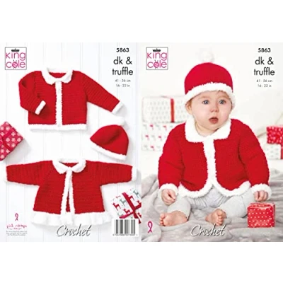 King Cole 5863 Crochet Pattern Baby Christmas Jackets and Hat in Cherished DK Truffle