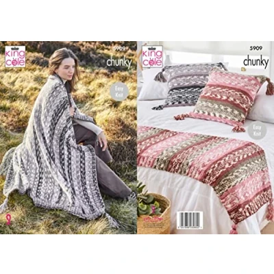 King Cole 5909 Knitting Pattern Blanket Bed Runner and Cushion Cover in Nordic Chunky