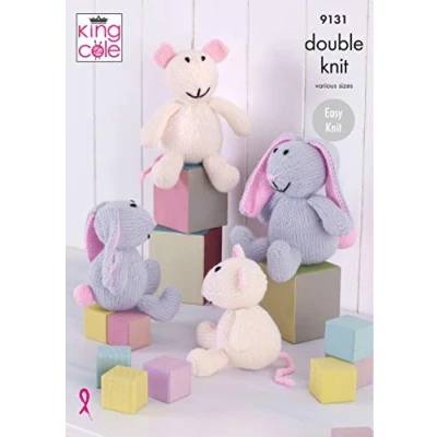 King Cole 9131 Knitting Pattern Easy Knit Bunnies and Mice Toys in Big Value DK