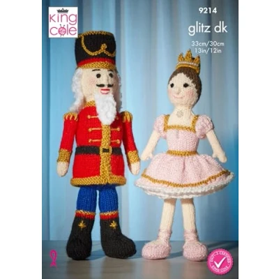 This is a King Cole knitting pattern that instructs you on how to create Princess & Nutcracker dolls, using King Coole Glitz DK, Big Value DK & Cuddles yarn. King Cole Glitz DK, Big Value DK & Cuddle – in various shades shown in the leaflet 12” – 13” 30cm – 33cm 1 pair of 3mm & 3.5mm Needles Please note: THIS IS A CROCHET PATTERN INSTRUCTING YOU HOW TO CREATE THE ITEM(S) YOURSELF AND NOT A READY MADE PRODUCT.