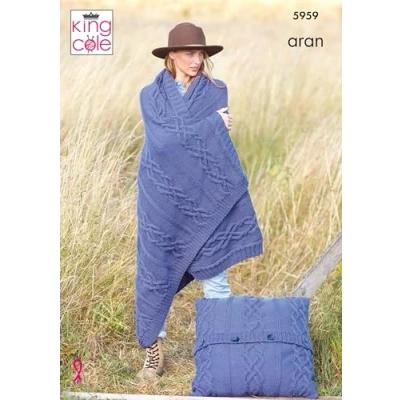 King Cole Aran Knitting Pattern Cable Knit Blanket Floor Cushion & Bed Runner (5959)