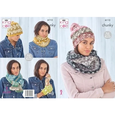 Please note. This is a knitting pattern pamphlet, not the items shown. Needle Size : 5.5mm & 6mm Tension : 14sts & 20 Rows to 4 in ( Stocking Stitch) Suitable for use with any standard weight Chunky yarn. Size Range : Average Ladies Knit in the Round