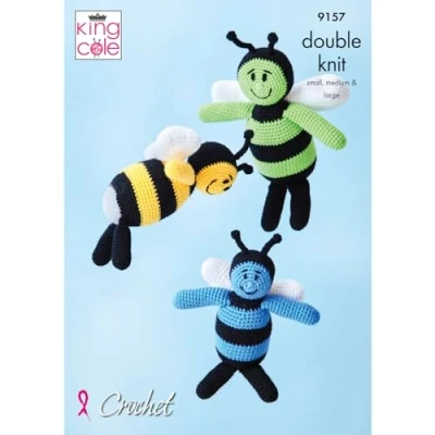 This is a paper CROCHET PATTERN instruction leaflet and not the finished items. Crochet with King Cole Big Value DK To make the items featured in this leaflet you will need 3.5mm crochet hooks. The following designs are featured in this leaflet: Amigurumi Crocheted Bumble Bees. Size Information: Sizes: Small, Medium and Large Please see leaflet for exact yarn requirements. King Cole recommend that you use King Cole Big Value DK other yarns maybe used but check tension requirements prior to starting your project. All instructions are in English., Manufacturer: King Cole