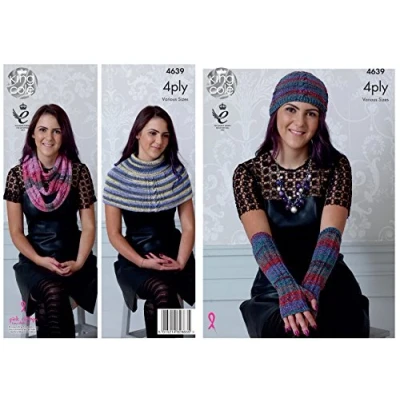King Cole Ladies 4 Ply Knitting Pattern Womens Scarf Hat Gloves & Polo Neck Warmer (4639)