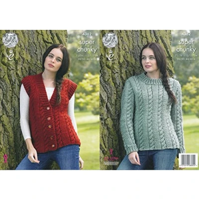 King Cole Ladies Big Value Super Chunky Knitting Pattern Cable Knit Sweater & Waistcoat (4362)