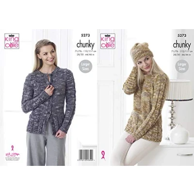 King Cole Ladies Chunky Knitting Pattern Womens Cabled Sweater Cardigan & Hat (5273)
