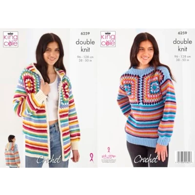 King Cole Ladies Double Knit Crochet Pattern Granny Square Hoodie & Jumper (6259)