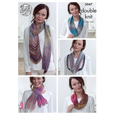 King Cole Ladies Double Knitting Pattern Womens Scarf Cowl & Scarflette (5047)