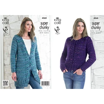 King Cole Ladies Gypsy Super Chunky Knitting Pattern Womens Cable Knit Sweater & Jacket (4068)