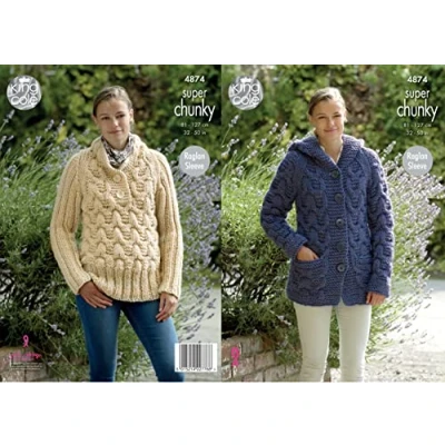 King Cole Ladies Super Chunky Knitting Pattern Womens Cabled Hooded Jacket & Sweater (4874)