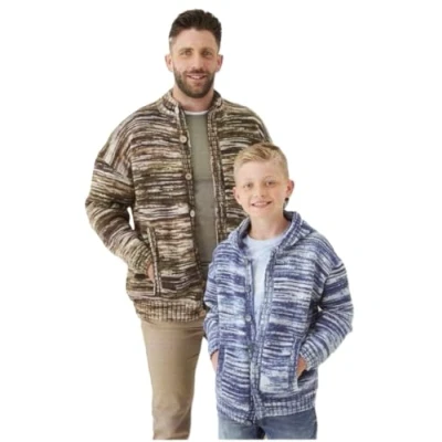 This is a paper KNITTING PATTERN instruction leaflet and not the finished items. Knit with King Cole Camouflage DK To make the items featured in this leaflet you will need 3.25mm and 4.0mm knitting needles. The following designs are featured in this leaflet: Stand Up Neck and Hooded Cardigans. Size Information: To Fit Chest: 71 - 117 cms / 28 - 46 Inches The yarn requirements for the garments in this leaflet are as follows: Stand Up Neck Cardigan to fit chest 28" - 30" [32" - 34": 36" - 38": 40" - 42": 44" - 46"] use King Cole Camouflage DK 100g - Woodland (5361) 4 [5: 6: 7: 8] balls. Hooded Cardigan to fit chest 28" - 30" [32" - 34": 36" - 38": 40" - 42": 44" - 46"] use King Cole Camouflage DK 100g - Marine (5363) 5 [6: 7: 8: 9] balls. All instructions are in English.