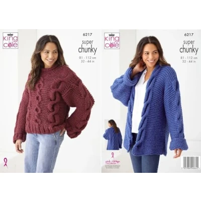 King Cole Super Chunky Knitting Pattern 6217 Ladies Sweater & Cardigan