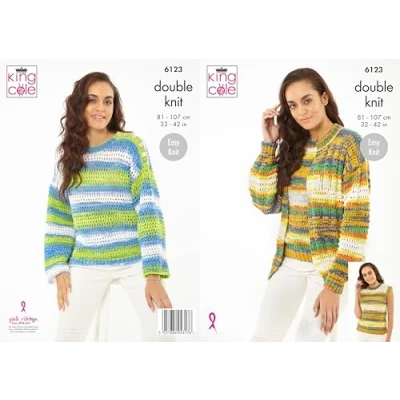 King Cole Women’s Knitting Pattern Easy Double Knit Sweater, Cardigan and Tank Top (6123), 32 42 (81cm 107cm) Bust Multicolour